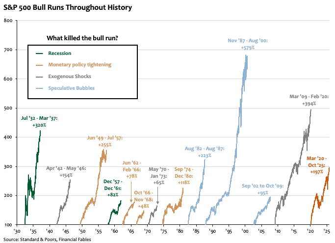 About a year ago, I wrote a piece entitled Murder Mystery: Who Kills Equity Bull Runs? The gist was simple: for much of the 20th century, equity bull runs didn’t just fade with age - they were murdered, usually by either the Federal Reserve’s (Fed) rate hikes or an approaching recession.